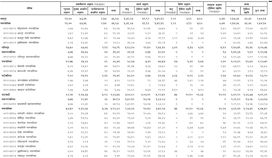 कुन स्थानीय तहलाई कति अनुदान (सूचीसहित)