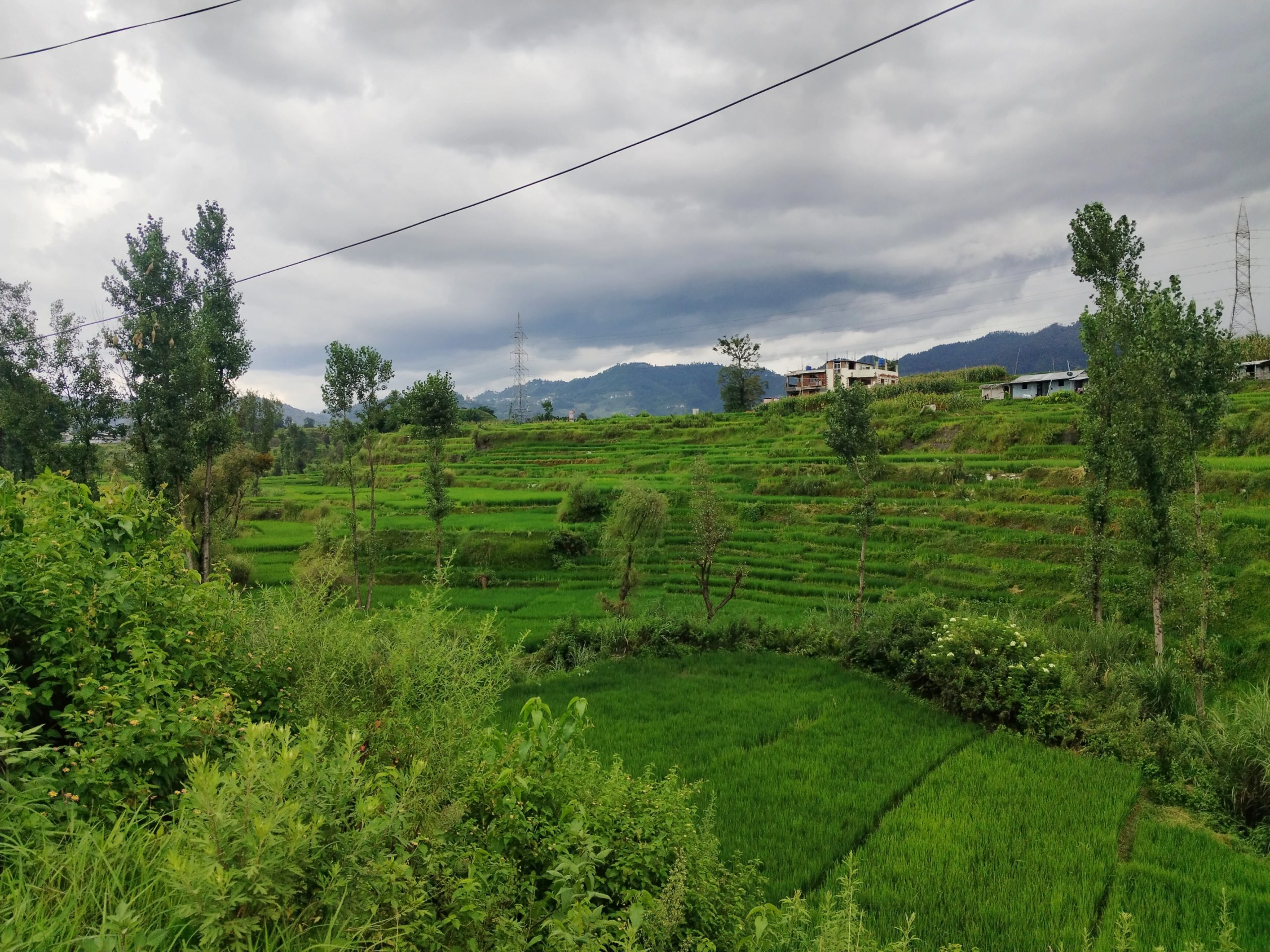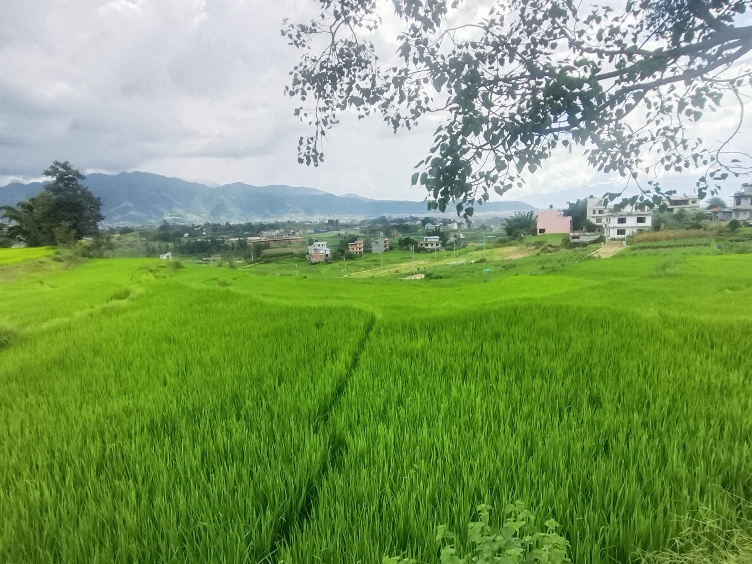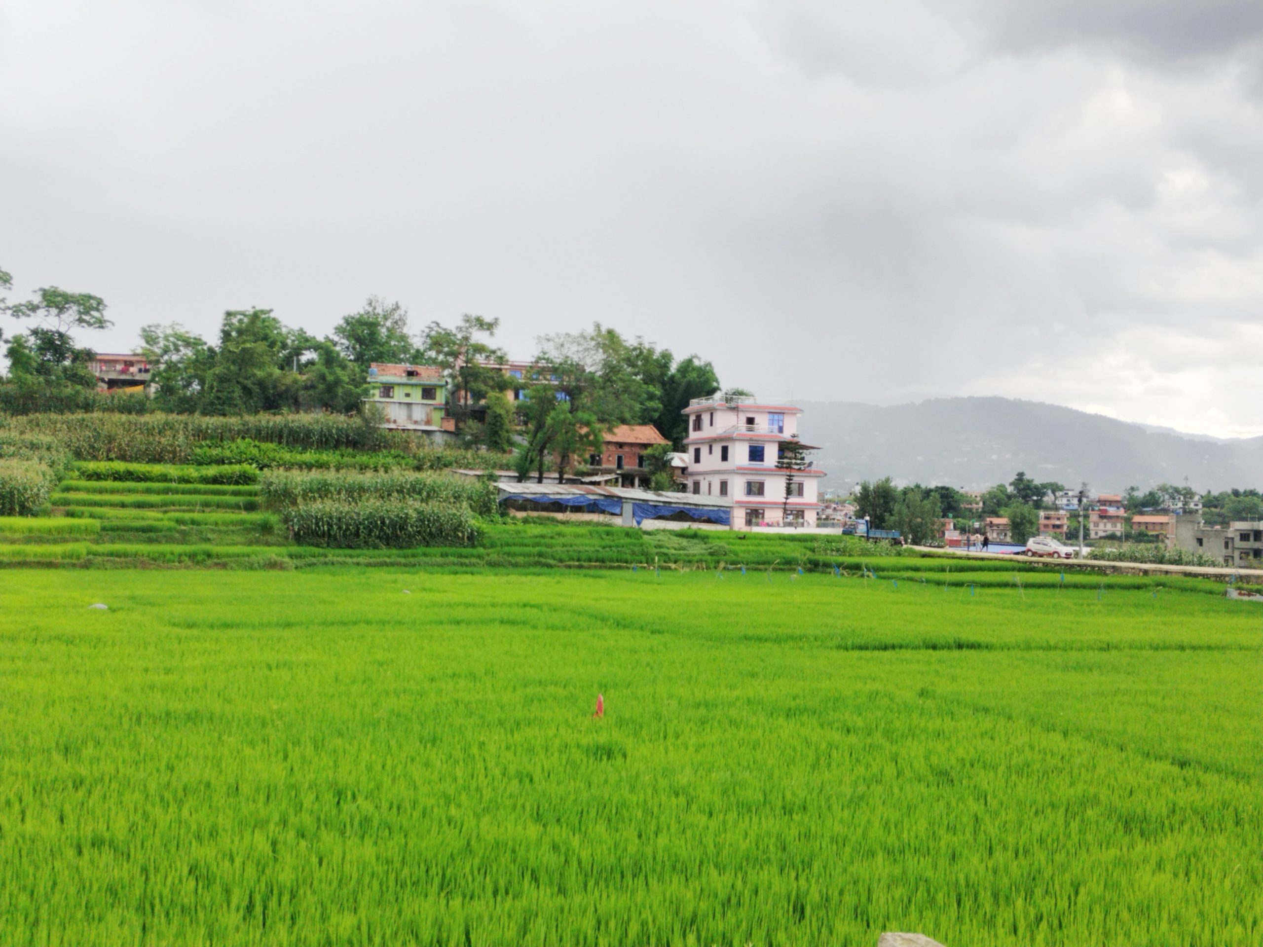 धनधान्यले भरिने आशाको प्रतीक बनेका यी हरियाली दृश्यले कृषकहरूको मेहनत र प्रकृतिसँगको सहकार्यलाई देखाउँछन्। टाढाबाट हेर्दा खेतहरू चित्रजस्तै देखिन्छन्—छाना भएको परम्परागत घर, वरिपरि पानीले भरिएको खेत, अनि त्यो खेतभित्र हरिया बिरुवाको सुन्दर संसार।