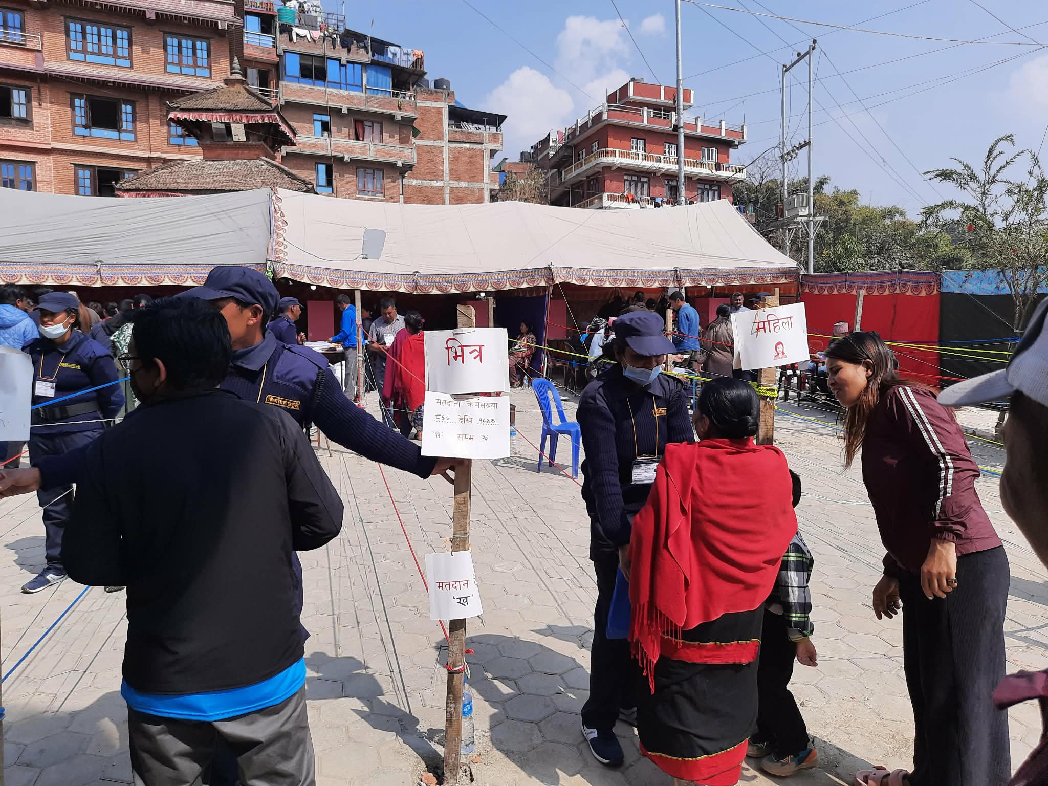 मतदान केन्द्रहरूमा सुरक्षाकर्मी, कर्मचारी तथा स्वयंसेवकहरू परिचालित छन्। कतिपय केन्द्रमा बिहान केहीबेर लाइन लागे पनि समग्रमा मतदान प्रक्रिया व्यवस्थित र शान्तिपूर्ण रूपमा अघि बढिरहेको निर्वाचन अधिकृतहरूले जनाएका छन्।